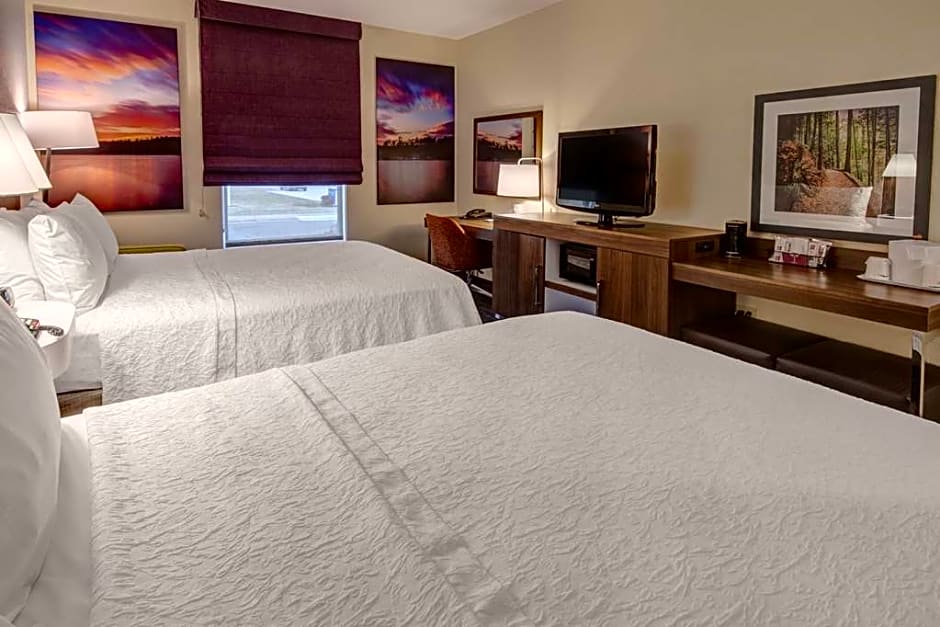 37-inch LCD HDTV, work desk & chair, one-cup coffeemaker, free WiFi Relax or work in this comfortable room featuring our queen clean and fresh Hampton bed® and a 37-inch LCD TV with movies and HD channels. Catch up on business with a large desk, a comfy desk chair and free WiFi. Re-energize in the bathroom which offers fluffy towels and a spacious walk-in shower. The room also contains a one-cup coffeemaker.